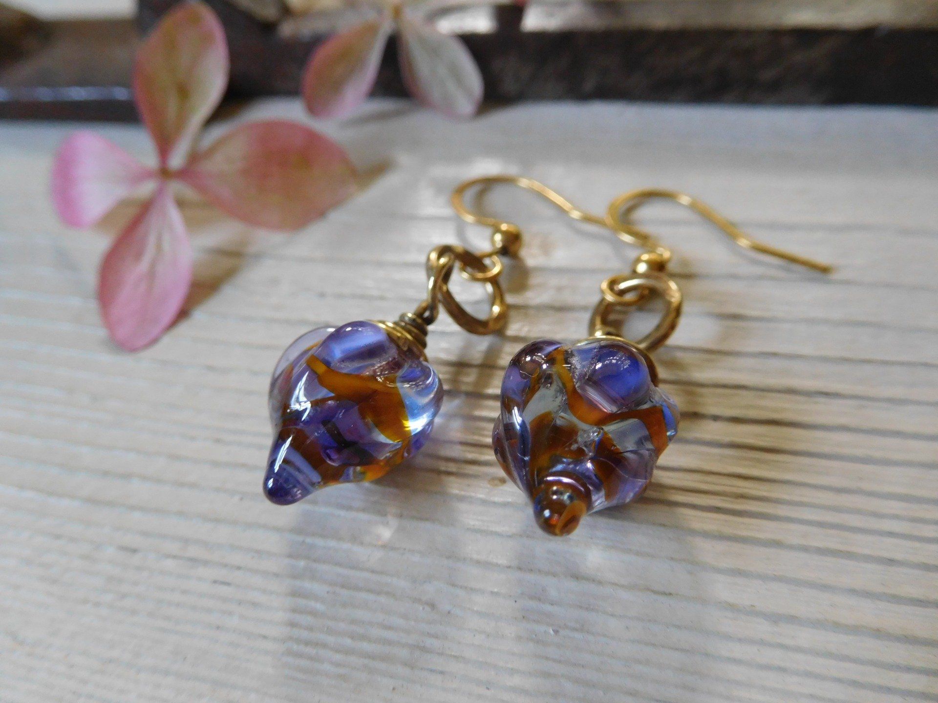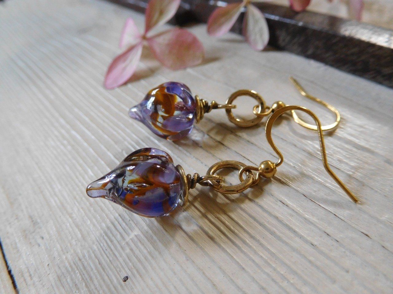 Boucles d'oreilles bohèmes avec perles en verre filé au chalumeau, modèle unique créé dans mon atelier en Finistère.