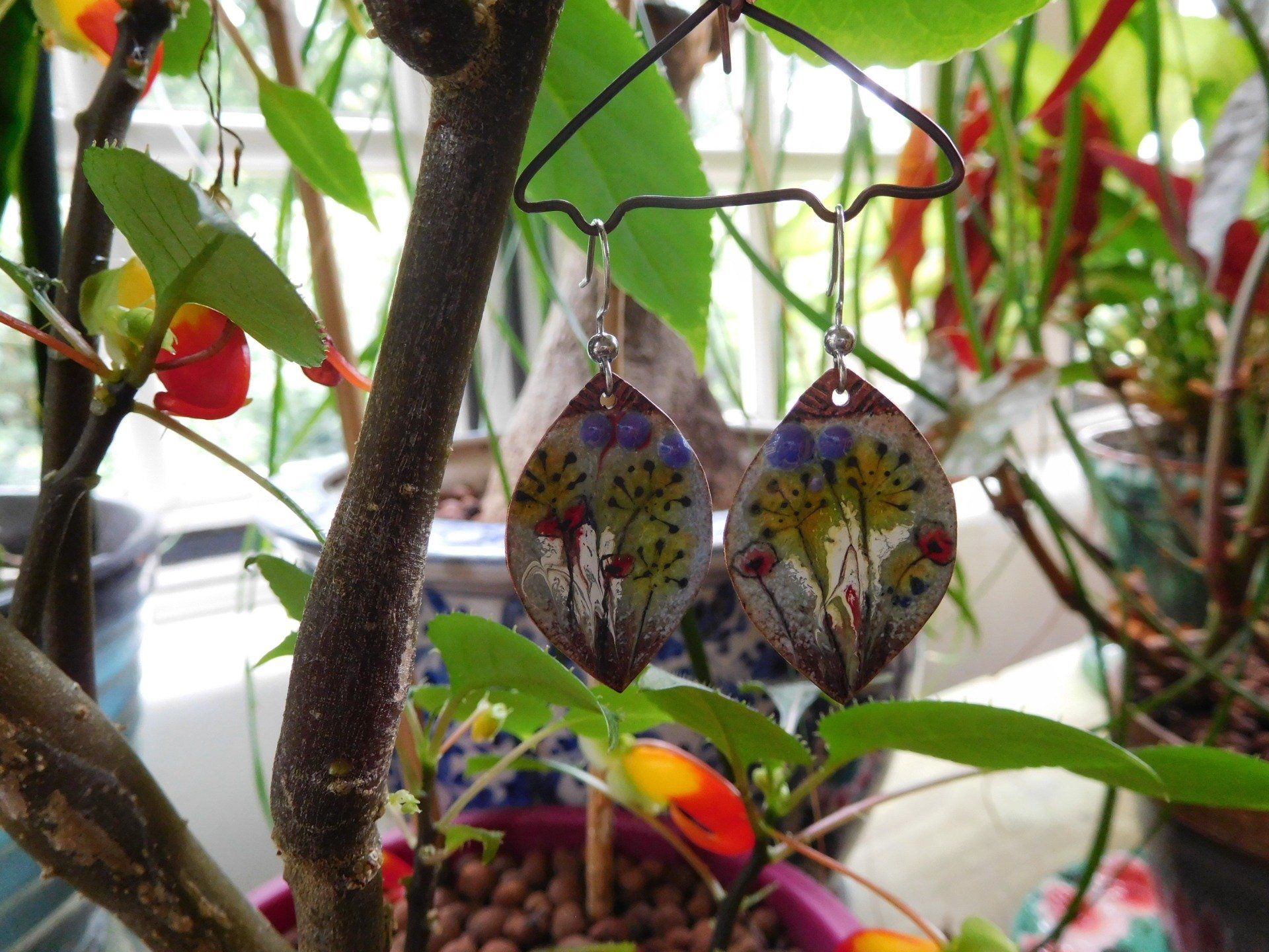 Boucles d'oreilles bohèmes en cuivre émaillé, modèle unique créé dans mon atelier en Finistère.