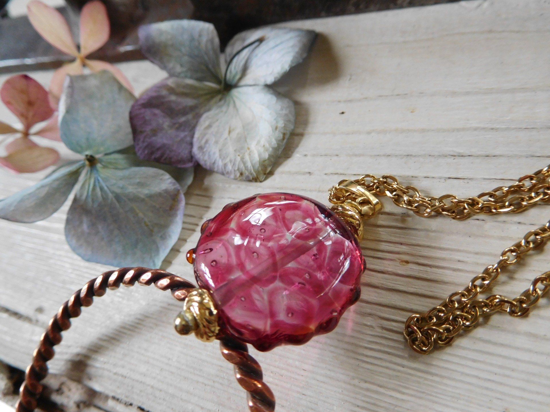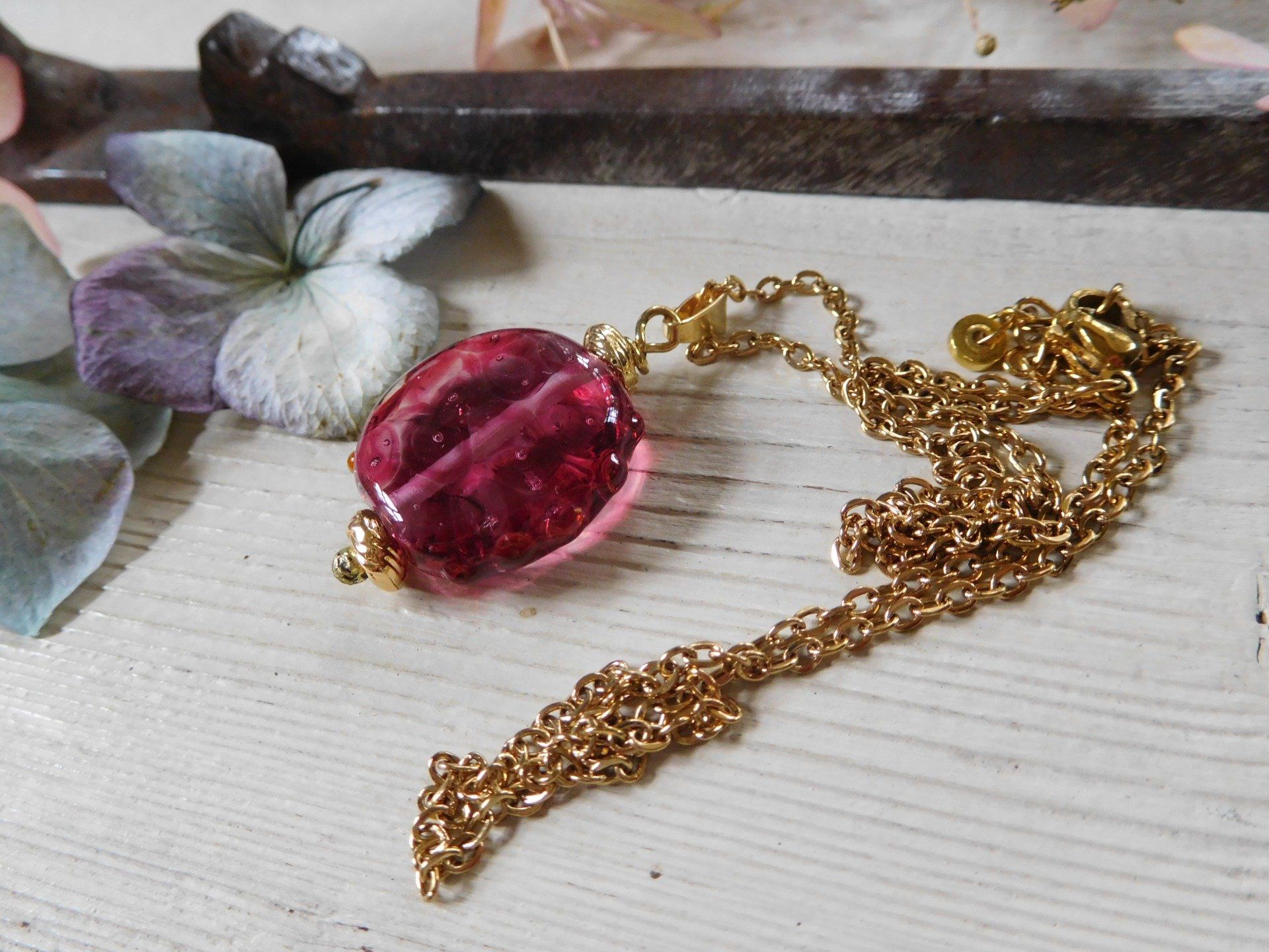 Chaîne avec pendentif, grosse perle en verre filé, créé dans mon atelier en Finistère, modèle unique.