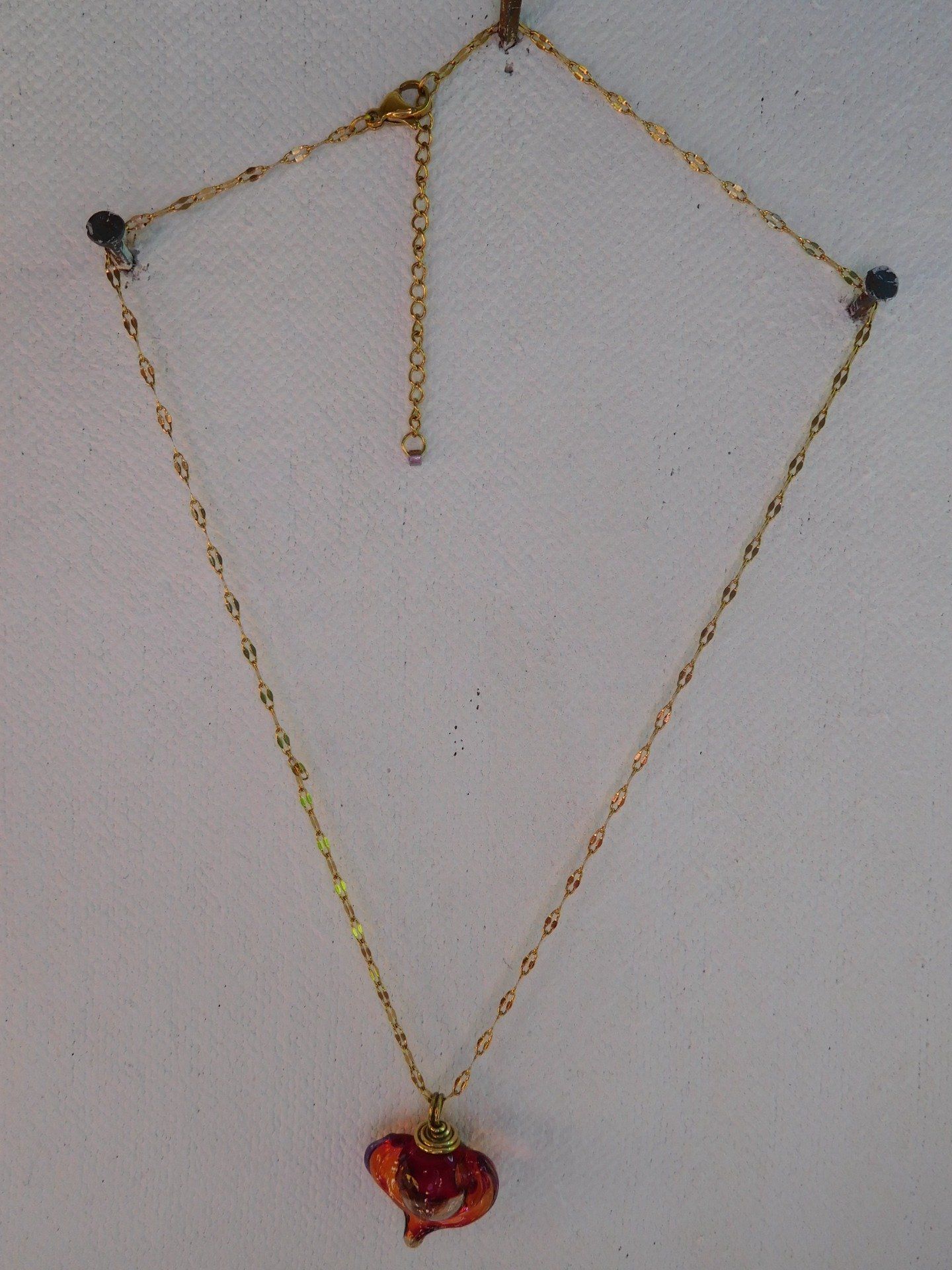 Pendentif perle en verre filé au chalumeau sur chaîne fine en acier inox doré, créé dans mon atelier en Finistère, modèle unique.