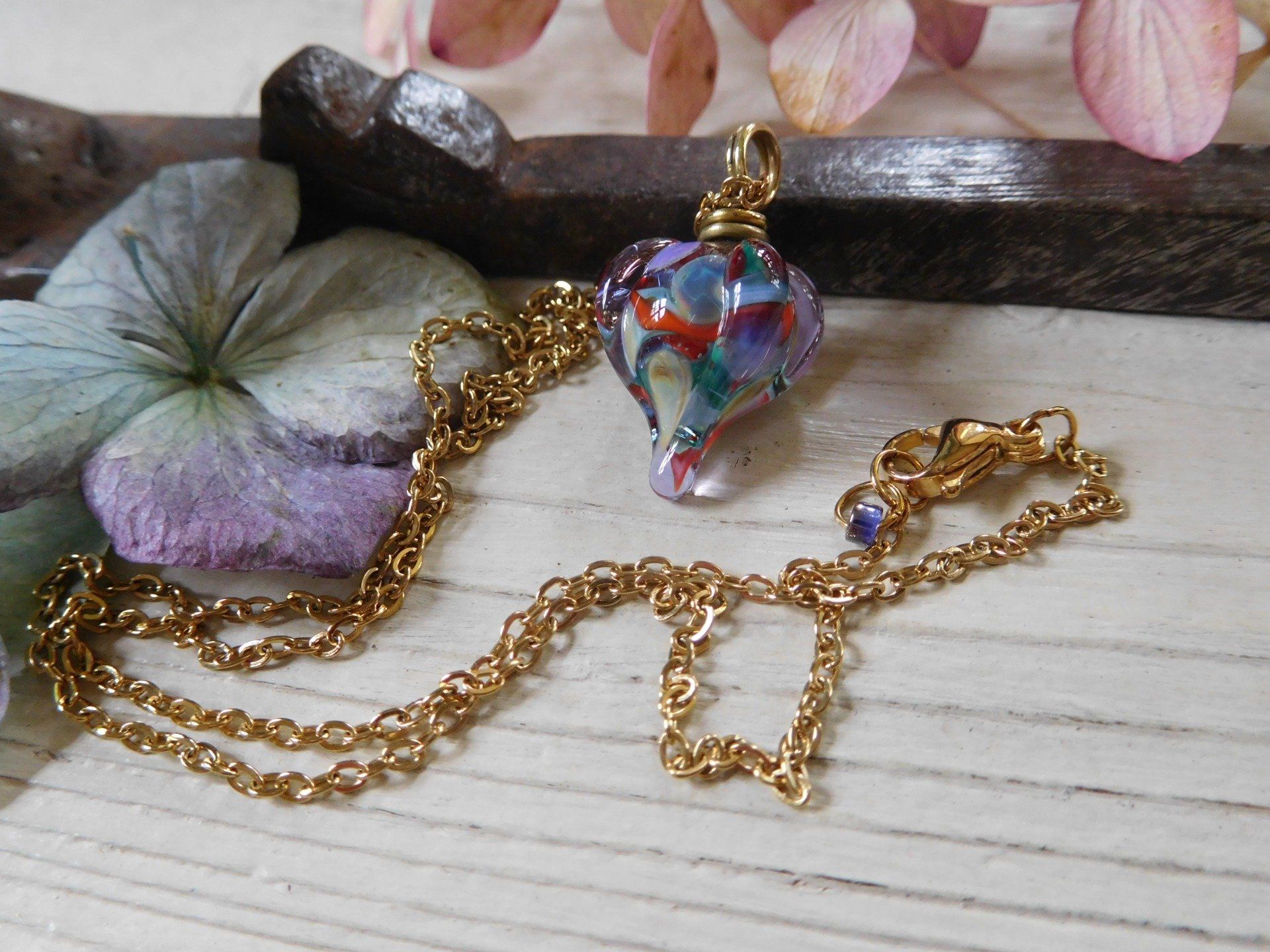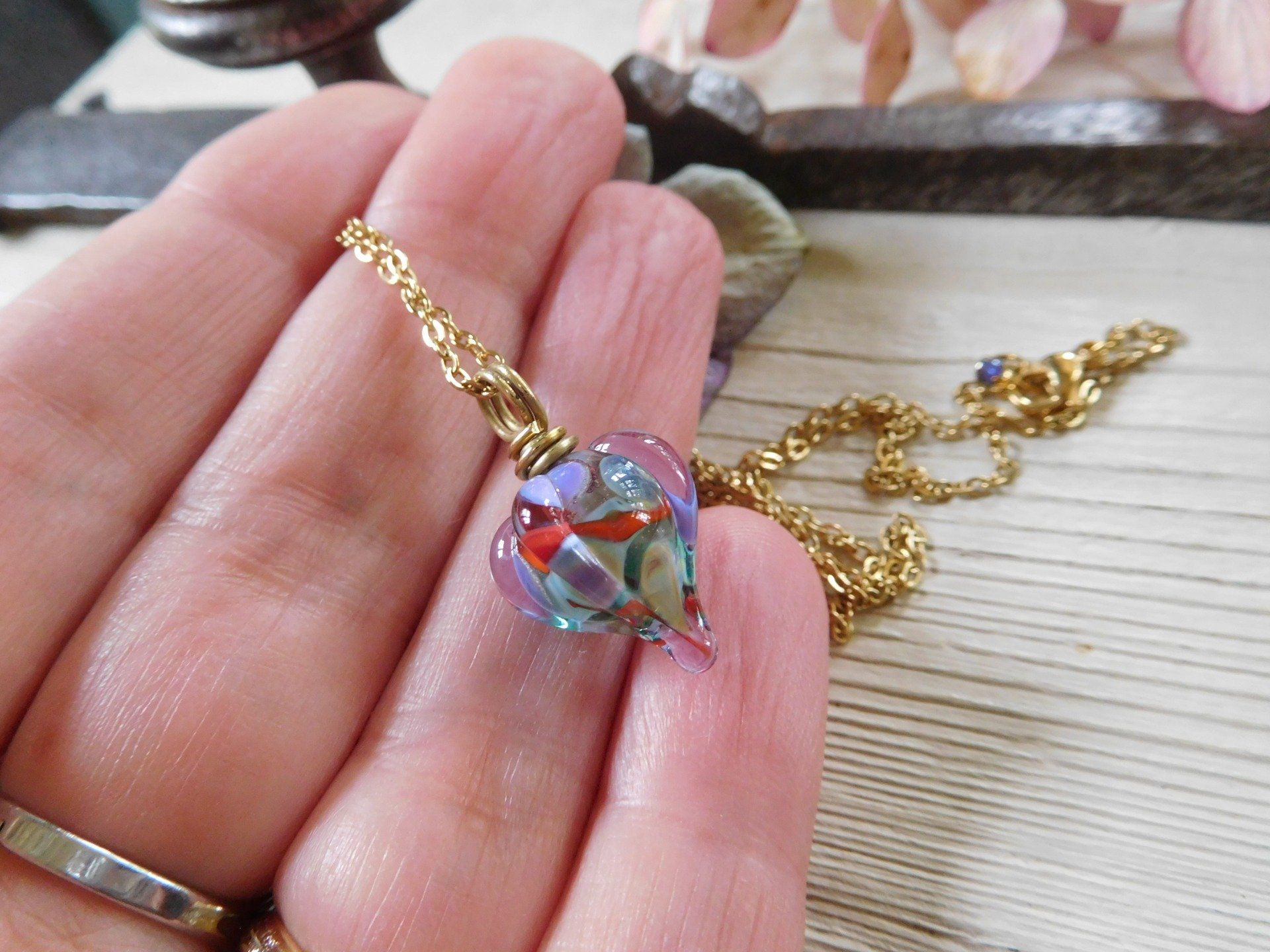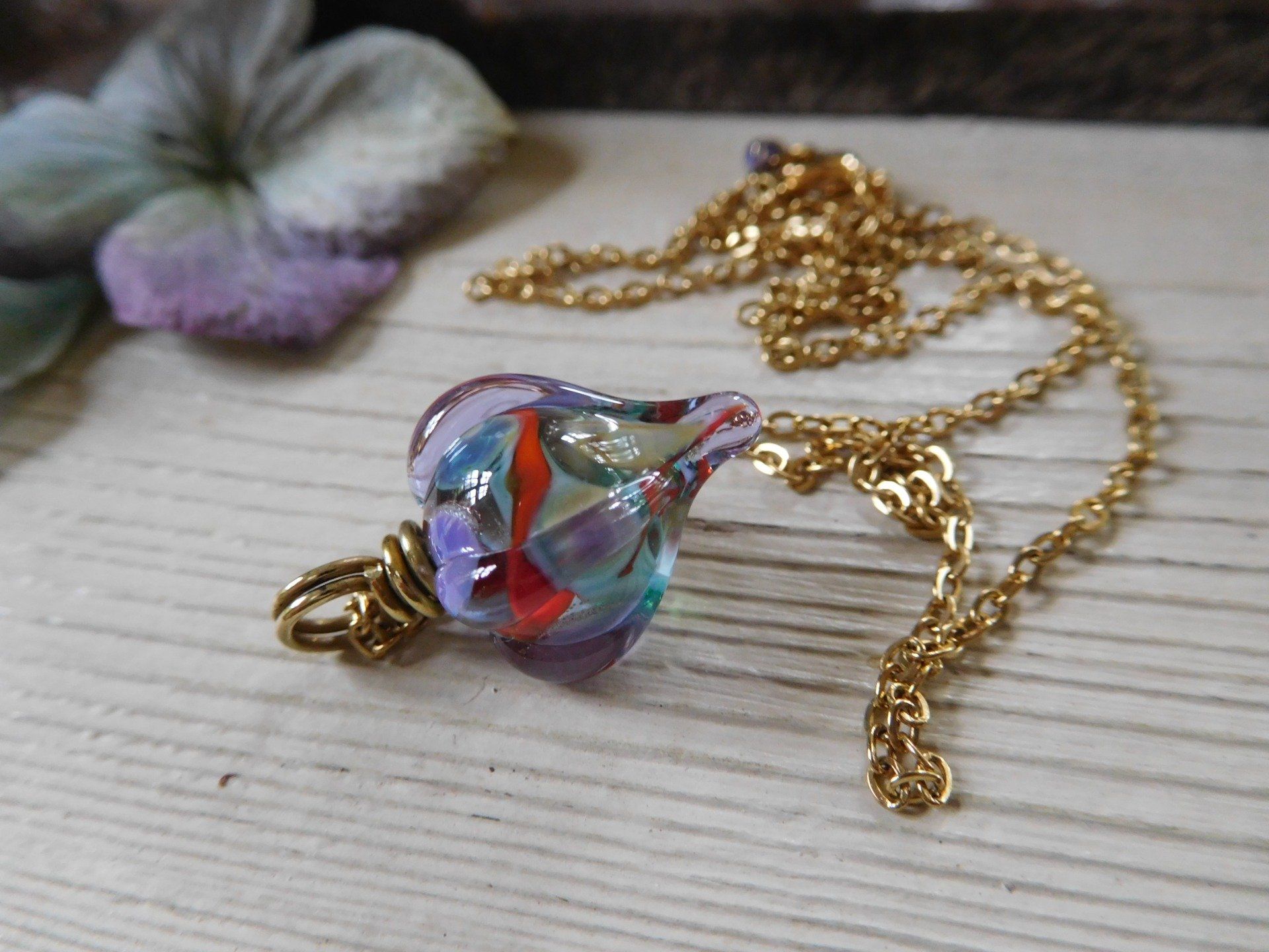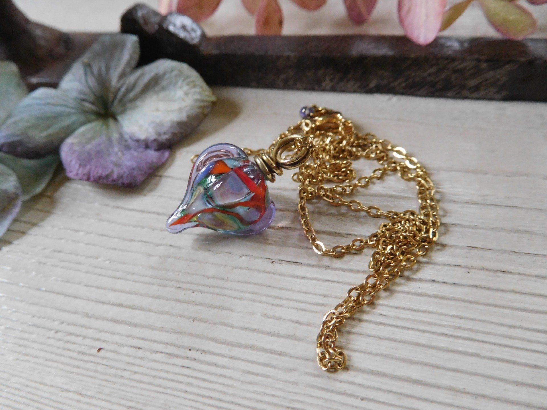Pendentif perle en verre filé au chalumeau sur chaîne fine en acier inox doré, créé dans mon atelier en Finistère, modèle unique.